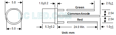 LC LED 5mm Flat Top Green and Red LED Milky Diffused