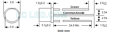 LC LED 5mm Flat Top Green and Yellow LED Milky (Common