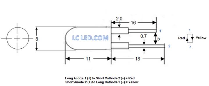 LC LED 8mm High Power Red and Yellow LED 55 Degree