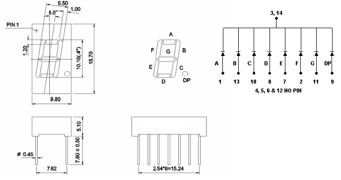 14 PIN 0.40 Inch (10.16mm) LED Cathode